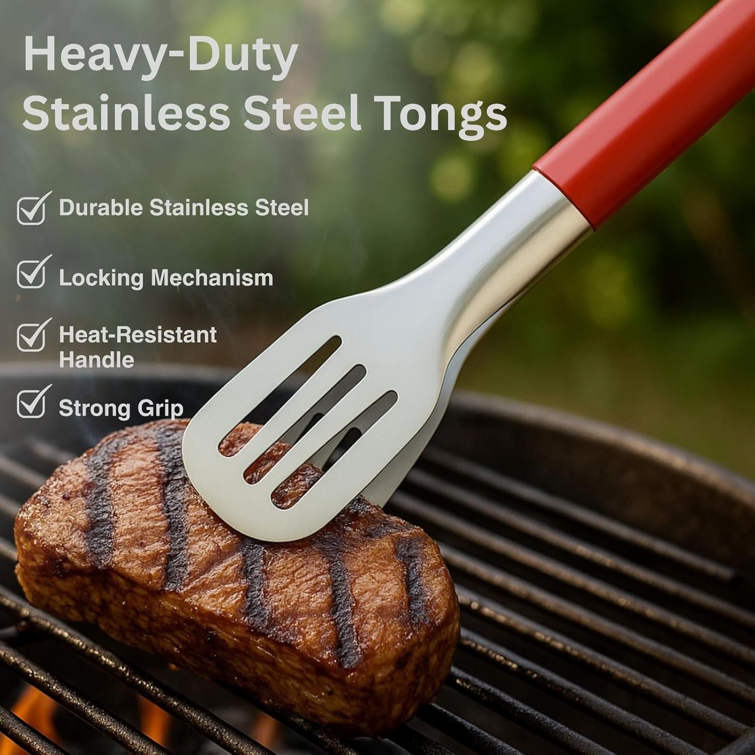 • 🍖 Complete Cooking Duo – Includes a silicone basting brush and stainless steel tongs for versatile kitchen and grill use.
